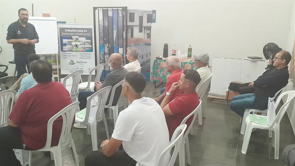 Aconteceu o primeiro treinamento do Izimassa, um momento importante para apresentar o produto, suas aplicações e os diferenciais que fazem a diferença no dia a dia da obra.